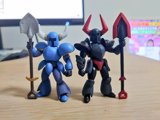 ショベルナイトのライバル、「ブラックナイト(Blackknight)」も完成したよ😎 ショベルナイトより細身にしてかっこよく仕上げてるよ😀 #Shovelknight #ショベルナイト #オモ写 #自作フィギュア twitter.com/tanajinfunhatt…