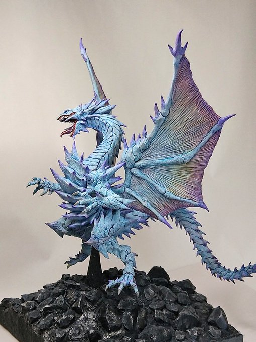 電の反逆者「電竜ライゼクス」完成しました!! ブラックライトで青電主みたいになるよう塗ってみました! 粗い部分は多いけどカッコよくできたと思います! #モンハン #自作フィギュア twitter.com/i/web/status/1…