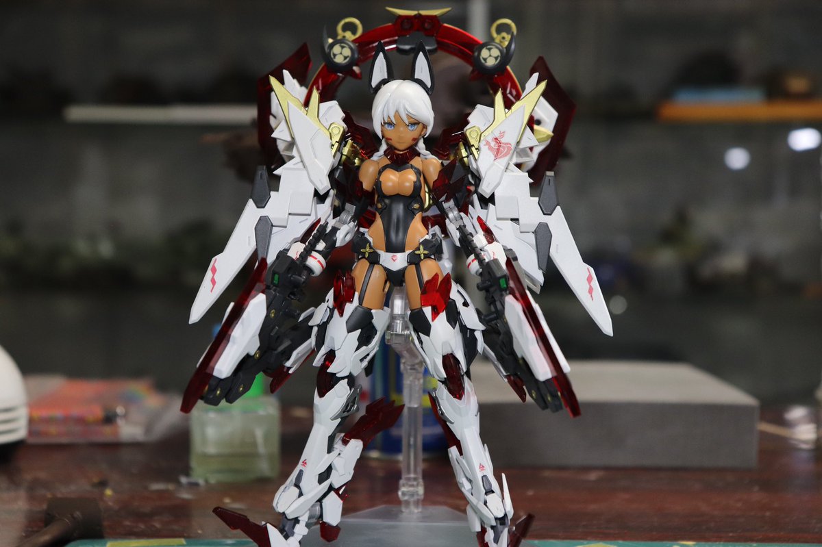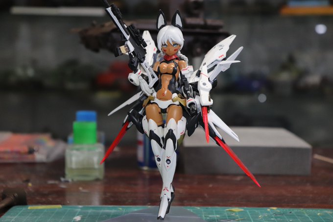 #自作品のお気に入り四天王の画像を貼る ・ストライクプリンチペッサ+ ・スサノヲ装備改"荒御魂" ・忍者エクステンド ・FAホーネット キュクヌス 武装モードで気に入ってるのだとこの4つかな。 #メガミデバイス