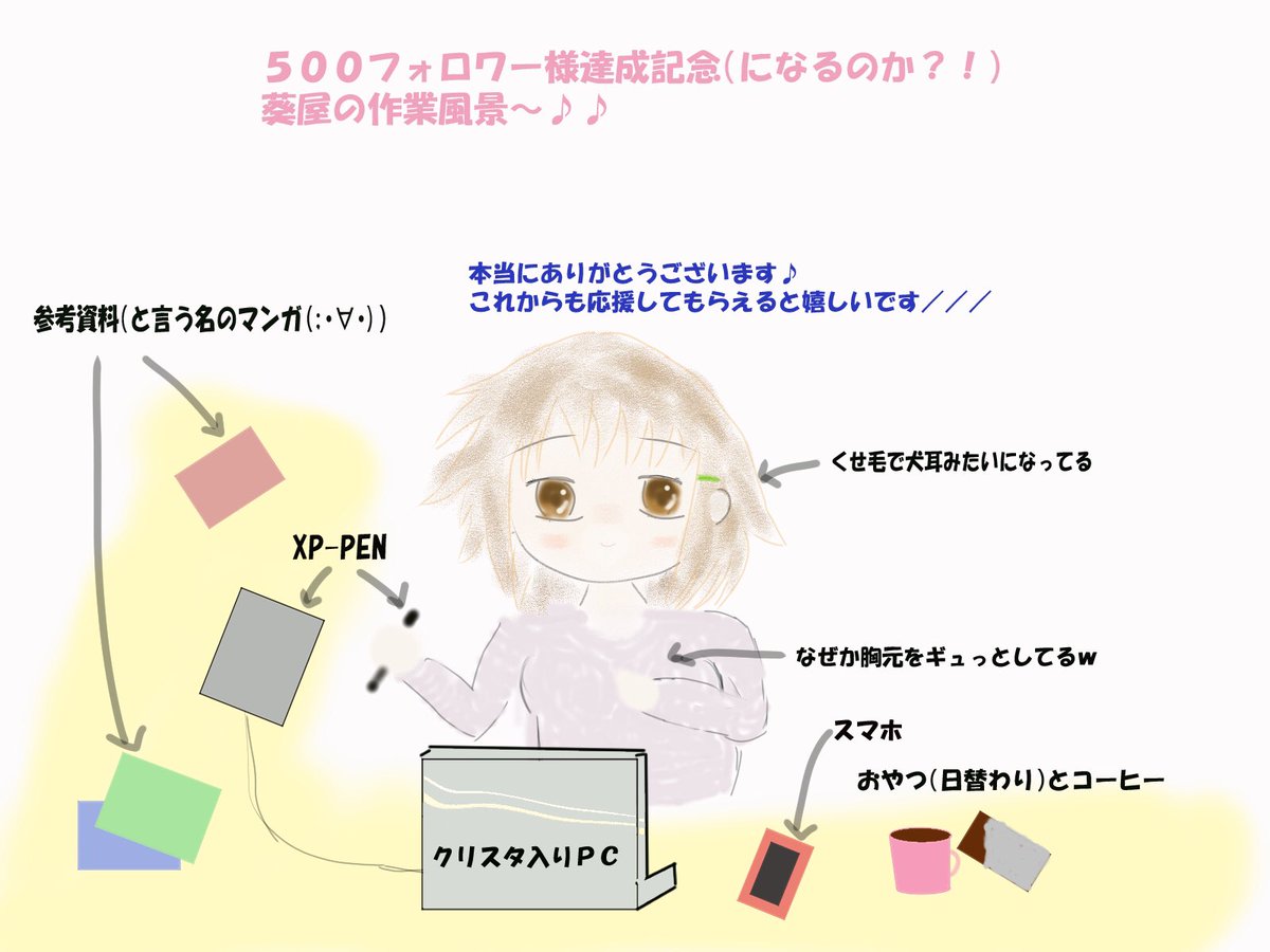 おはようございます︎💕︎ 寝過ごしちゃった(´>ω∂`)☆テヘッ←反省ゼロ 作業風景イラストも100いいね♥️10RTありがとうございます︎🥺すごく励みになります︎💕︎ 新規絵…💦 #自作品のお気に入り四天王の画像を貼る #イラスト好きな人とつながりたい