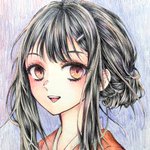 #自分の描いた絵を貼ってプレゼンする このビッグウェーブ(タグ)に乗っておきたい。 いまだにアナログでお絵かきしてます。 画材はコピックがメイン。 髪の毛ツヤツヤにするのが大好き。 豆色紙も販売してます。1点ものなのでちょっと特別感あるかもよ~。 #Glaze