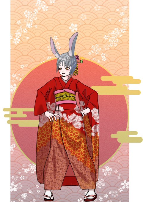 卯年!擬人 ケモミミ イラスト描いてみました😄 柄を描くのが大変だけど着物イラストにしてみました☀️ #アトリエの系譜 #絵描きさんと繋がりたい #イラスト好きな人と繋がりたい #自分の絵がどこまで届くか試したい