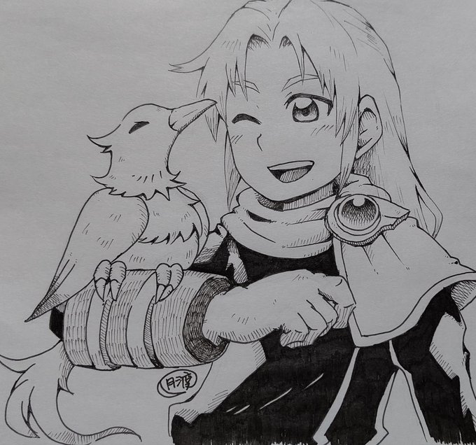 にゃほ〜🌠 明日、娘の入園説明会に行かなければならなくてド緊張してるんだけど、絵を描いてると落ち着いてくるのでした😊 イラストは(多分)鳥使いの青年とよく分からない種類の鳥🐦 #イラスト #創作 #自分の絵がどこまで届くか試したい #私の絵柄が好みって人にフォローされたい #アナログ