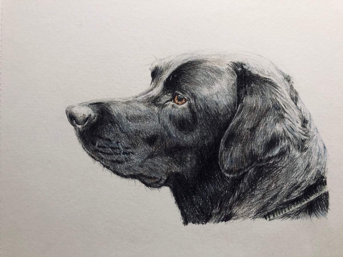 六枚目。 黒ラブかっこいい。でも、色鉛筆画は難しかった。 #模写 #犬 #黒ラブ #動物 #色鉛筆画 #絵描きさんと繫がりたい #イラスト好きな人と繋がりたい #自分を知ってもらうための7日間