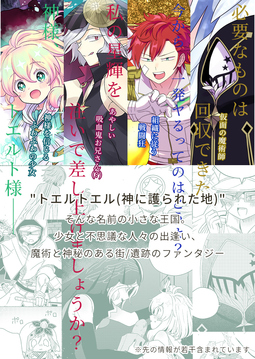 タグ企画 #自創作マンガ布教フェス01 に参加します 森に捉われていた少女が 様々な人に出逢い・街や遺跡をめぐる 異世界・ハイファンタジー 青年少女の組み合わせや中性的なお兄さん、ヤバいお兄ちゃん、不思議な生命体とか好きな方✨ (本編は引用にて) twitter.com/chitosegin/sta…