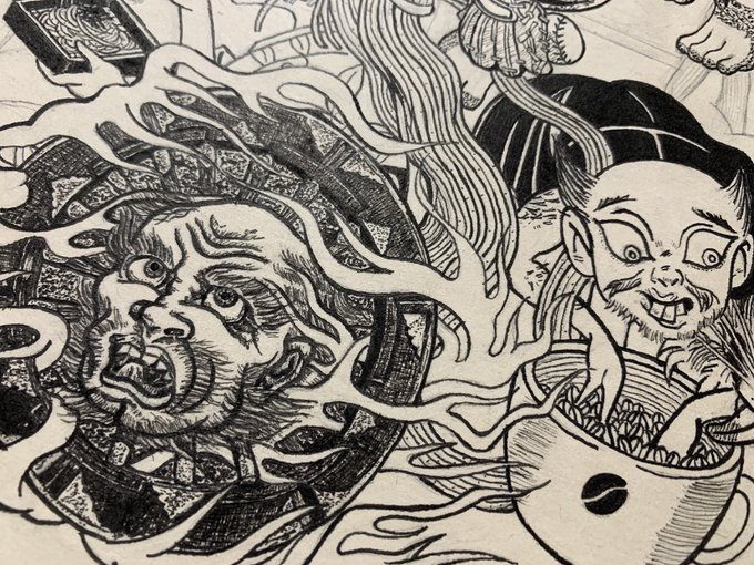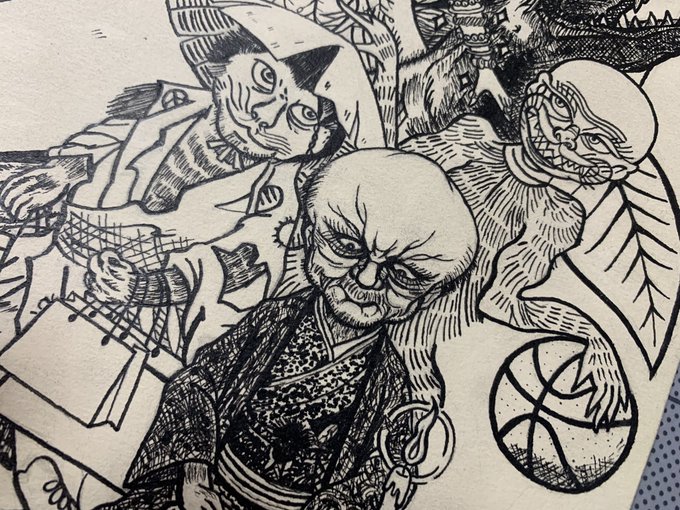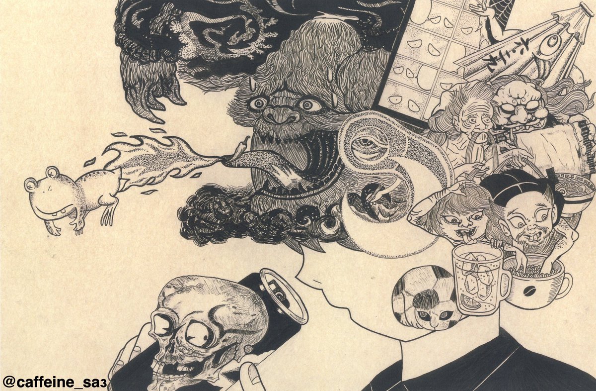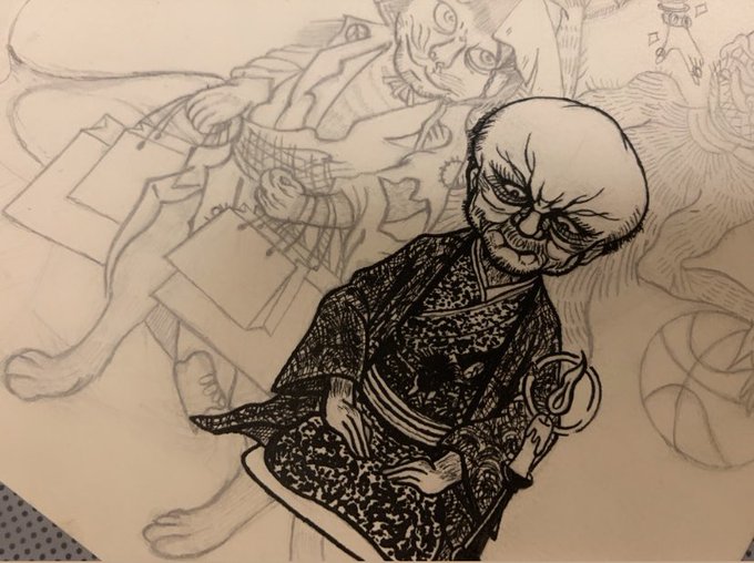 下書き飽きてきたからぬらりひょんペン入れ✒️ #自己解剖図 #絵 #イラスト #絵描きさんと繋がりたい #イラスト好きさんと繋がりたい #妖怪 #ゲゲゲの鬼太郎 twitter.com/caffeine_sa3…