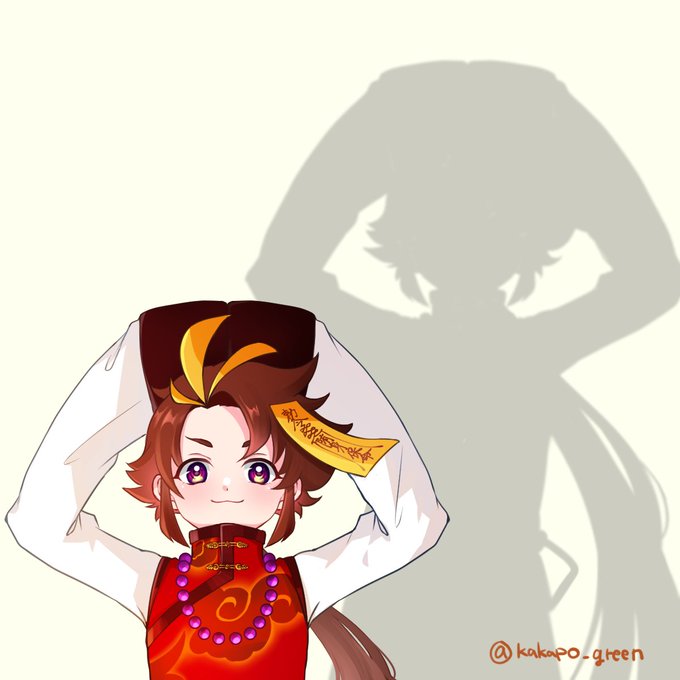 #自手練【91手目】王 太鳳+目玉 今日は頭上で手を組む目玉の影絵です🙆 太鳳くんはスプラも上手な推しのキョンシーVTuberさんです🥰 お誕生日にお祝いできなかったので、手が出ない衣装ですが、描きました😌 心の目で見てください🙏 皆さんおはようございます🦜☀️ #描いタオ #100日チャレンジ