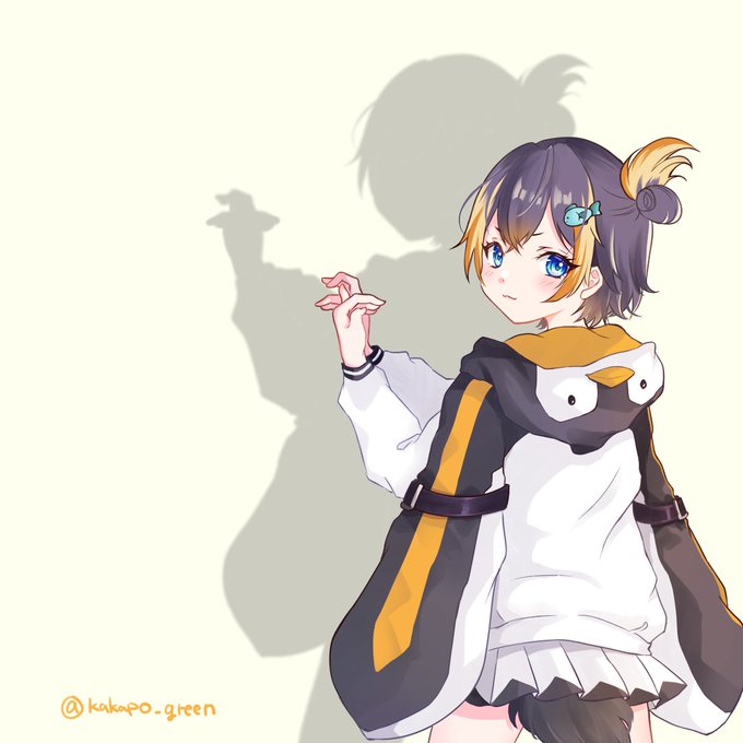 #自手練【92手目】Petra Gurin+ペンギン ペトラちゃんは主に英語を用いて活動するVTuberさんですが、たまに日本語配信もしています✨ 今は新しい衣装なのですが、ペンギン味強めが可愛い旧衣装でペンギンの影絵をしていただきました🐧 皆さんおはようございます🦜☀️ #PetraArt #100日チャレンジ