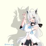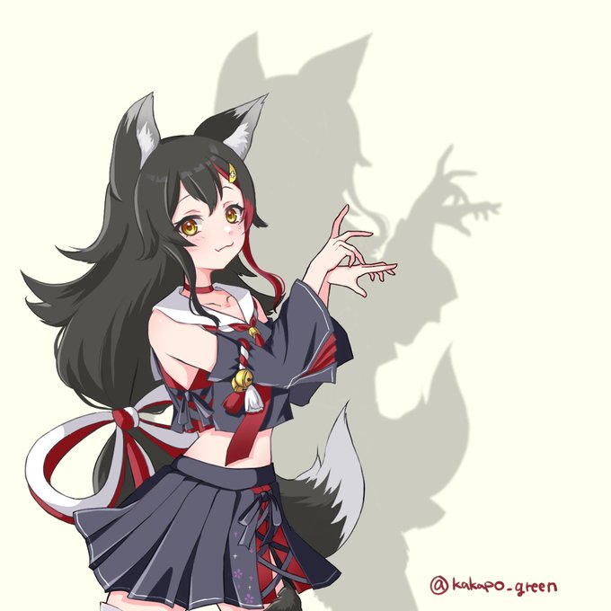 #自手練【96手目】大神ミオ+オオカミ 今日の影絵は「オオカミ」です🐺 遠吠えしながら元気にやりましょう📣 ミオしゃはsplatoonを親指の軟骨が消失するほどやりこむゲーマーさんで、タロット占いもできちゃうVTuberさんです🎤 皆さんおはようございます🦜☀️ #みおーん絵 #100日チャレンジ