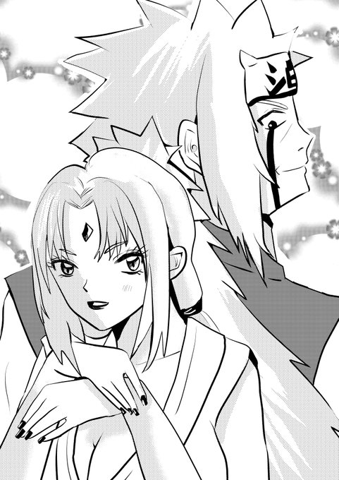 綱手BD2022 | 小後 舞真 #pixiv pixiv.net/artworks/10018… #NARUTO #綱手生誕祭2022 #自来也 #ジラツナ #絵描きさんと繋がりたい #らまそい 自来也の隈取を描き忘れるという失態…(笑) Pixiv修正済です。