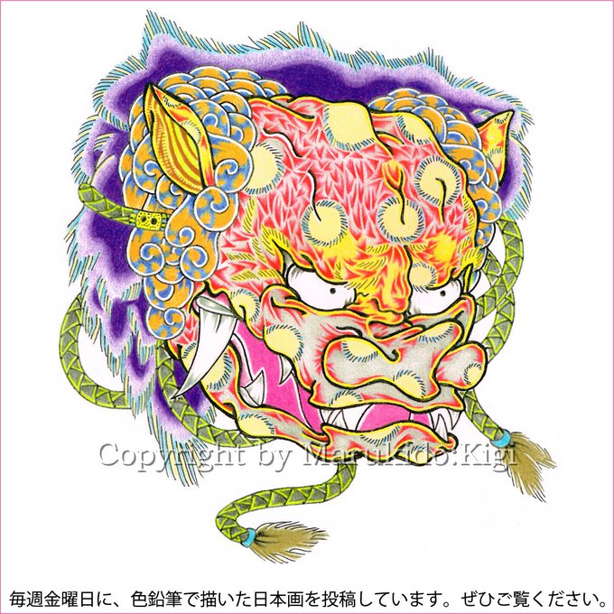 【強面獅子の思いやり!】 怒りや悲しみ、寂しさの感情を、世界の人助けの為のエネルギーに変える! #日本画 #イラスト #色鉛筆画 #Illustration #刺青 #イラスト好きと繋がりたい #絵描きさんと繫がりたい #ウクライナ #エコロジー #ArtistOnTwitter #妖怪 #artmoots #自然保護 #マインドフルネス