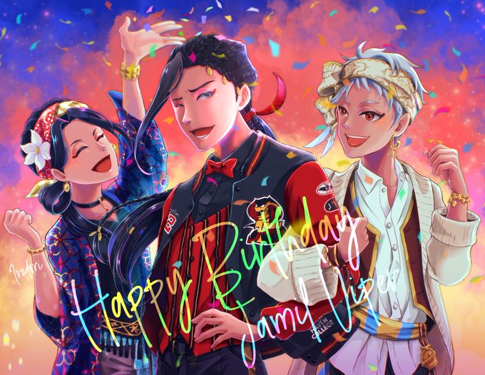 #ジャミル・バイパー誕生祭2021 #自由に踊れジャミル・バイパー誕生の宴2021 遅くなりました! おめでとう推し! 今年は兄妹も推していきたい… 楽しい仲間に囲まれて、今年も幸せな一年を…✨✨