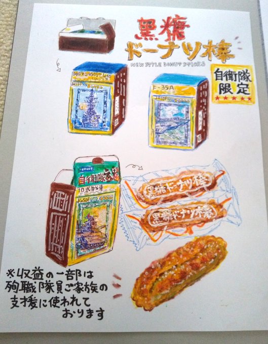有難い事に御注文でお描きしましたイラストを綺麗にラミネートして貰いPOPとして #白壁兵舎広報史料館 さんの売店にて飾って頂いております!皆、大好き #亀田の柿の種 は売り切れだそうで…入荷をお待ちくださいませ!(*`・ω・)ゞ #イラスト #新潟 #自衛隊 twitter.com/shop_shirakabe…