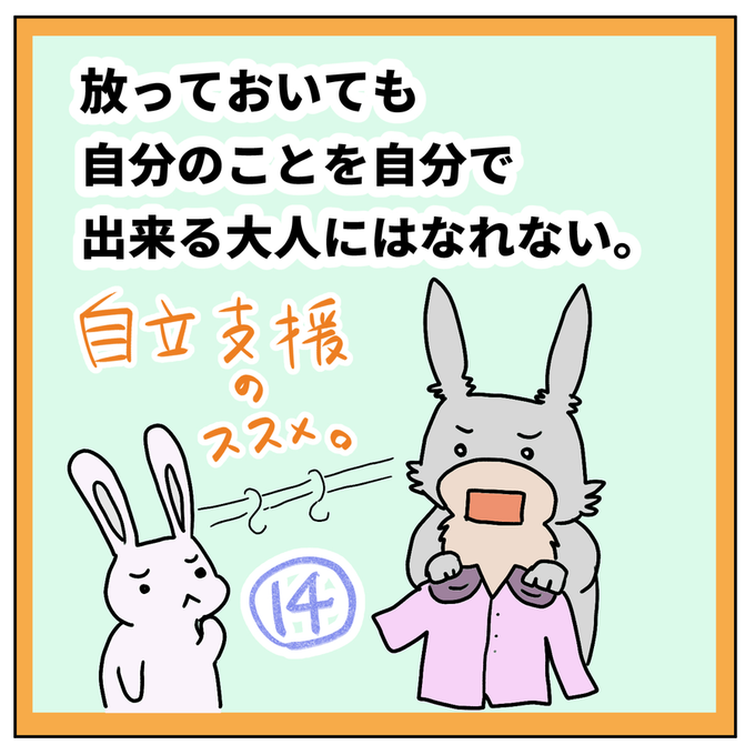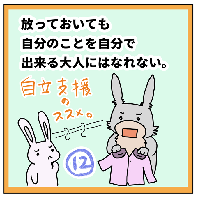 #自閉日記 83 実は1番簡単で1番難しいことが、子どもを信じて「待つ」ことだと思っています。 待てずに、早く出来るようにしなきゃ!って焦って無理やりやらせようとしても本人がまだそこに追いついていないこともある。 ゆっくり待ちましょう…(自戒) #漫画が読めるハッシュタグ