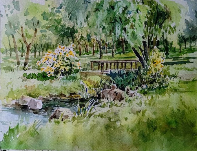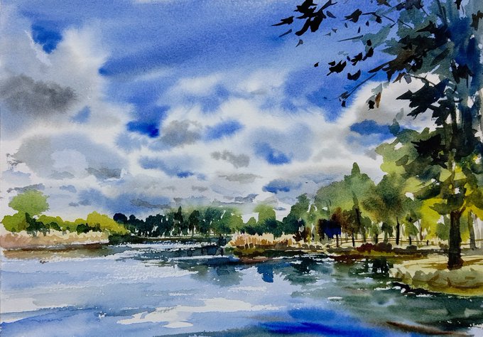 現地でのアイデアスケッチを元に着色しました。#スケッチ #野外スケッチ #写生 #透明水彩画 #水彩画 #風景画 #舎人公園 #watercolour #watercolor #fieldpainting #outdoorsketch #sketch #landscapepainting #aqurelle #toneripark