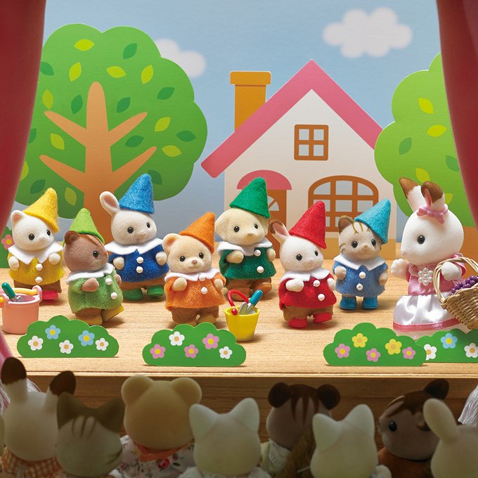 今日はようちえんの発表会🎶 おそろいの衣装がとっても似合ってますね🌼 このお話はもしかして… みなさん、なんのお話かわかりますか🍎? #シルバニアファミリー #シルバニア #おゆうぎ会 #舞台 #白雪姫 #シルバニア赤ちゃん