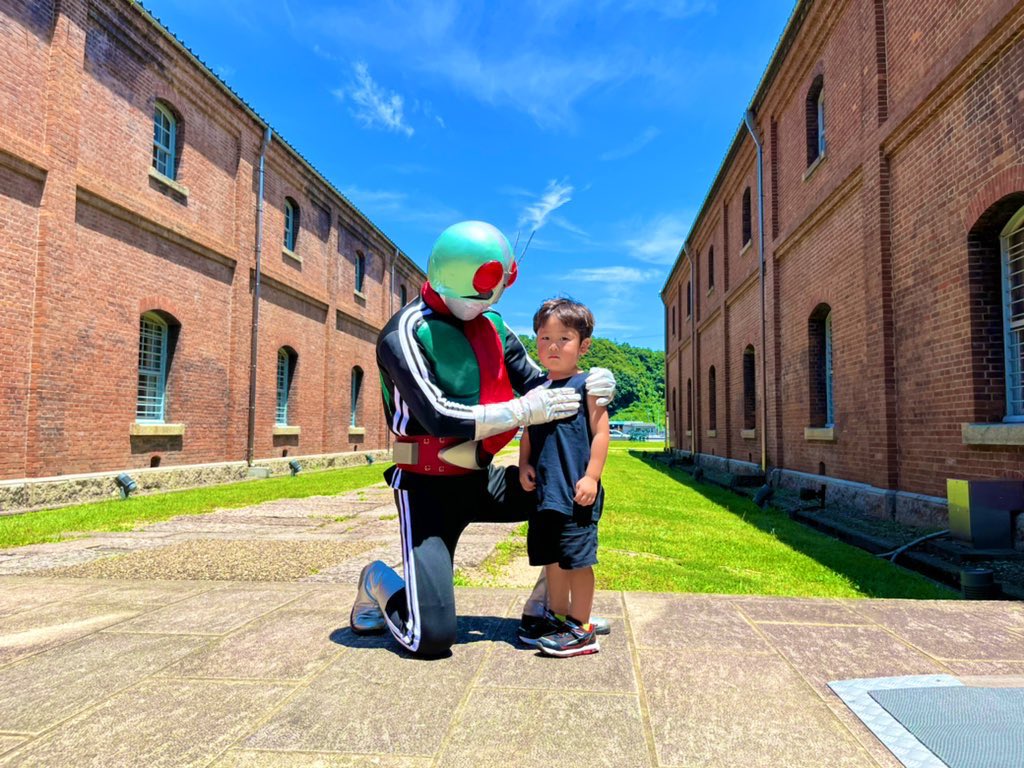舞鶴赤レンガ倉庫 甥っ子が仮面ライダーと写真撮ってもらいました😎 コスプレのイベントやってたのか 色んな人いた! コスプレしてたカチューシャの落とし物してはったお姉さん可愛かった!😂笑 #舞鶴赤レンガ倉庫 #COSJOY #落とし物してた人と繋がりたい笑