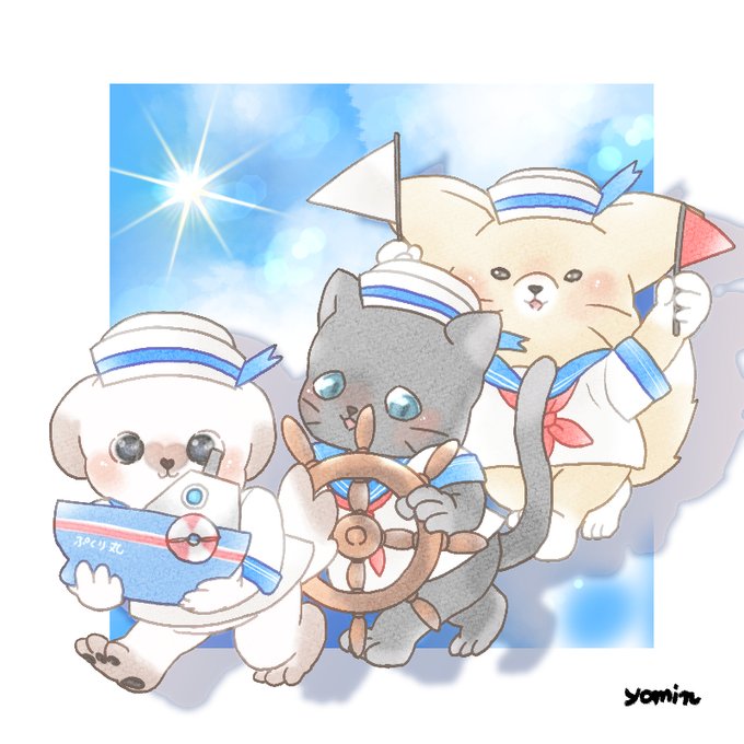 【ぷくりいぬ】6/25船員デー おはよー☀️ 今日は船員デーなんだって!みんなで船員さんになってみたよ🐶⛴ ぼくが船長!おやつの管理は任せてね #イラスト #絵描きさんと繋がりたい #イラスト好きさんと繋がりたい #ゆるいイラスト #illustration #今日は何の日 #船員デー