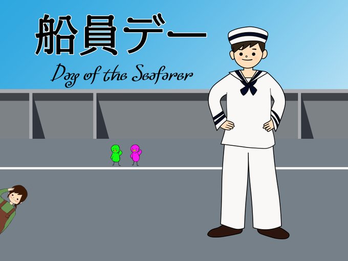 本日は「#船員デー」です♪ 青空に白いセーラー服がまぶしいね✨キリッ。 #イラスト #今日は何の日 #絵描きさんと繋がりたい #イラスト好きさんと繋がりたい #ゆるいイラスト #illustration