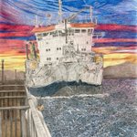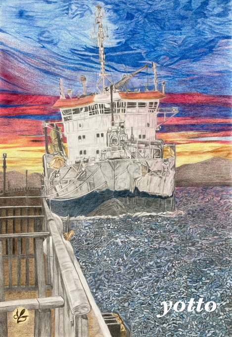 色鉛筆画「 乗船 」 #色鉛筆 #色鉛筆画 #絵画 #絵 #風景画 #船 #pencilart #colorpencil 完成しました。 海沿いを散歩していた時、風が心地良かったことを覚えています。