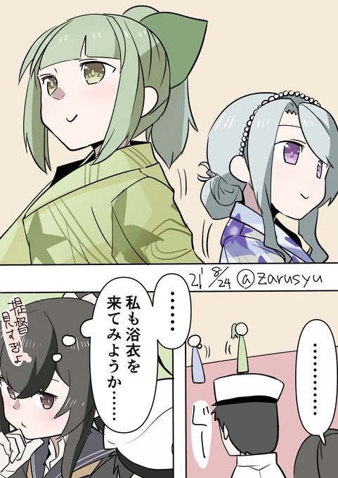 もし矢矧の浴衣実装したら乙きてから出撃回数うなぎ登りなので、今はまだ矢矧推しでない提督も……ライバルが増えてしまうな……! 矢矧、夕張、狭霧 #艦これ版深夜の真剣お絵描き60分一本勝負 #艦これ版真剣お絵描き60分一本勝負_20210824