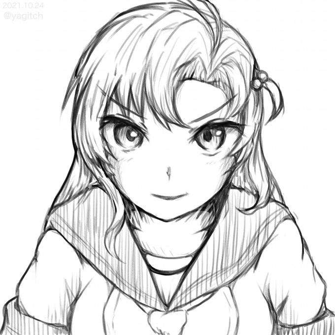 #衣笠 #艦これ版深夜の真剣お絵描き60分一本勝負 #艦これ版真剣お絵描き60分一本勝負_20211024 高校生くらいのイメージで穏和な雰囲気の衣笠さん 実はコンテで引く線を間違えたことを塗り段階で気づきました💧 しかもカラー塗りは時間がかかりすぎてニッチもサッチも 衣笠さんリベンジしなくては!