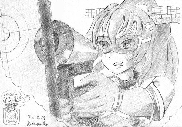 すみません。ネタに走りました。 緊張の時間、「波動砲発射!」の夢を見る大和さん。 #艦これ版深夜の真剣お絵描き60分一本勝負 #艦これ版真剣お絵描き60分一本勝負_20211029 #艦これ #大和 #波動砲
