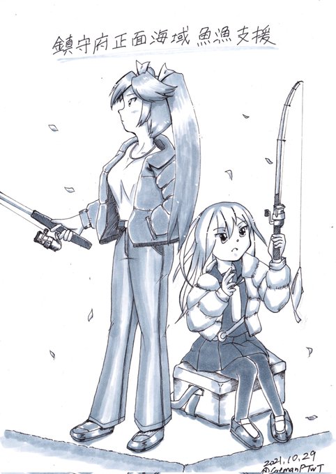 #五十鈴 #菊月 #艦これ版深夜の真剣お絵描き60分一本勝負 #艦これ版真剣お絵描き60分一本勝負_20211029 秋刀魚イベント始まりましたね 本腰いれる前に正面海域で肩慣らしの魚釣り