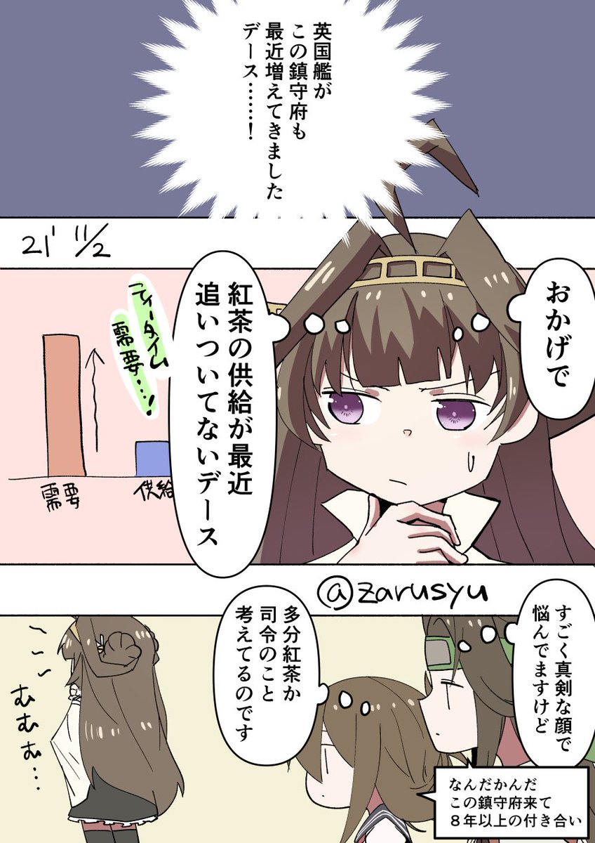 英国艦もウォースパイトやアークロイヤル、ヴィクトリアスなど大分増えてきて紅茶需要も増えてきたのかなと 金剛、電、神通 #艦これ版深夜の真剣お絵描き60分一本勝負 #艦これ版真剣お絵描き60分一本勝負_20211102