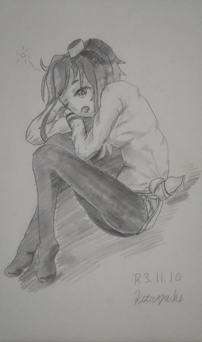 涼月ちゃん。 色々試して失敗たくさんしたので夜中にこっそり…。 一応座っている構図です。 #艦これ版深夜の真剣お絵描き60分一本勝負 #艦これ版真剣お絵描き60分一本勝負_20211110 #艦これ #涼月