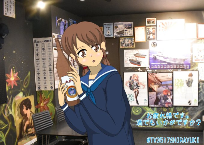 #艦これ版深夜の真剣お絵描き60分一本勝負 #艦これ版真剣お絵描き60分一本勝負_20211203 #白雪 #たまや 先週のたまやさん貸切イベント の#酒を消費する会 のイメージ図ですw 何度でも言いますが本当にお疲れ様でした∠( ゚Д゚) ※白雪さんが持っているたまやラベルの日本酒はフィクションです。