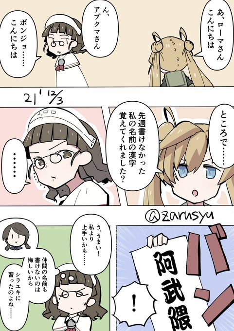 ローマはツンケンしてるイメージ以上に仲間であることとか認めるところは認めてくれる、妹だけど姉御肌っぽい感じします。(霧島っぽいともいう) 阿武隈、ローマ、白雪 #艦これ版深夜の真剣お絵描き60分一本勝負 #艦これ版真剣お絵描き60分一本勝負_20211203