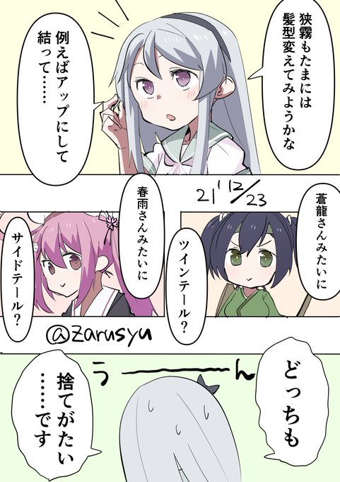 髪を切った後に外出ると何とも言い知れぬ解放感のあと、頭部や首元が寒さに襲われるのあると思います。 狭霧、蒼龍、春雨 #艦これ版深夜の真剣お絵描き60分一本勝負 #艦これ版真剣お絵描き60分一本勝負_20211223