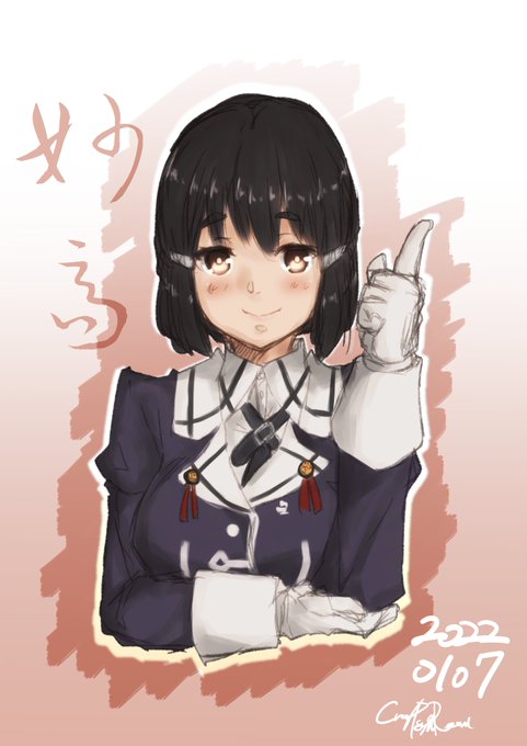 #妙高 #艦これ版深夜の真剣お絵描き60分一本勝負 #艦これ版真剣お絵描き60分一本勝負_20220107 演習の指導を行っていた妙高を 眺めていた私に気づいて 小さく手を振ってくれた 冬の朝