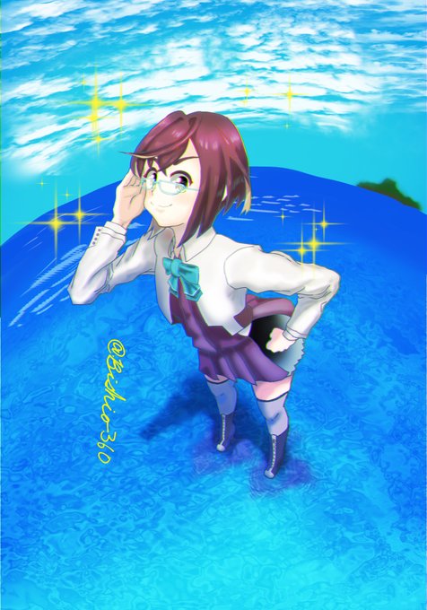 #艦これ版深夜の真剣お絵描き60分一本勝負 #艦これ版真剣お絵描き60分一本勝負_20220114 ワンドロどころかフォードロでした でも沖波ちゃん可愛いので魚眼レンズの練習も兼ねて頑張って描きました!