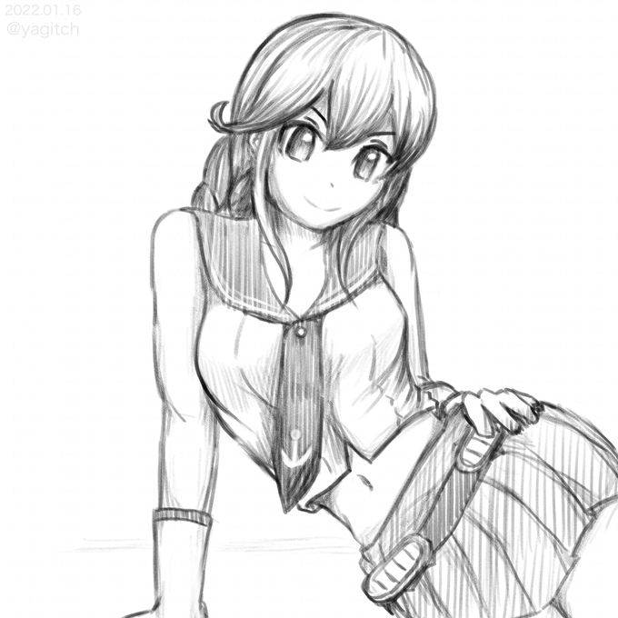 #能代 #艦これ版深夜の真剣お絵描き60分一本勝負 #艦これ版真剣お絵描き60分一本勝負_20220116 能代ちゃんにとってはちょっと不本意なポーズだったかも? でもどうしてもこの子で描きたかったの 描きながらちょっとドキドキできる立体感だったので満足です