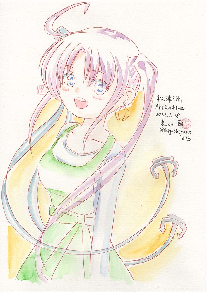 フタサン、マルマル!提督、今日も一日お疲れ様だったかも!明日も頑張ってね! #秋津洲 です 元気いっぱいなこの娘からお世話されたいです!! #艦これ版真剣お絵描き60分一本勝負_20220118 #艦これ版深夜の真剣お絵描き60分一本勝負 #艦これ #透明水彩 #ホルベイン #呉竹 #絵描きさんと繋がりたい