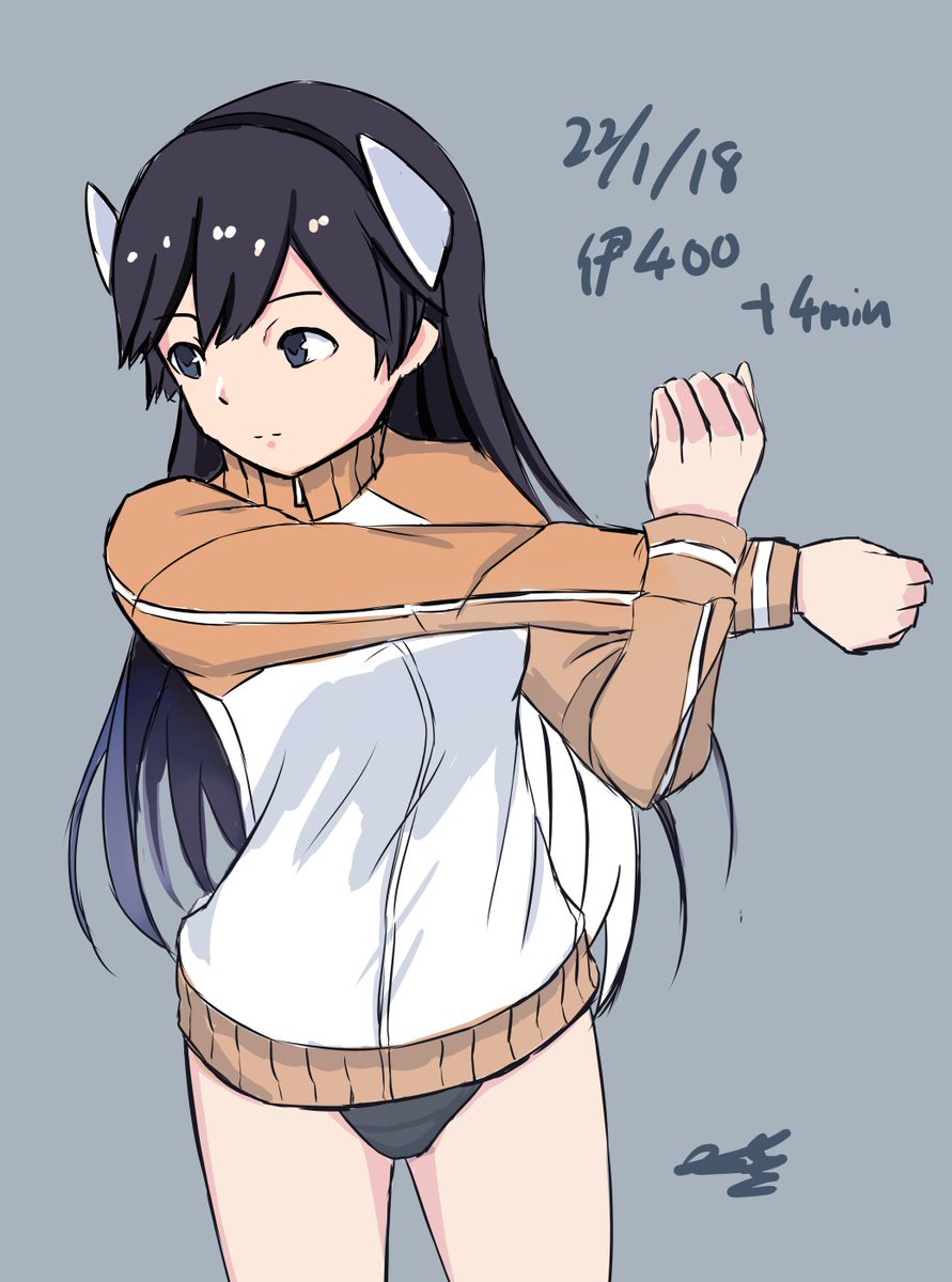 #艦これ版真剣お絵描き60分一本勝負_20220118 #艦これ版深夜の真剣お絵描き60分一本勝負 #伊400進水日 準備運動的な (進水日って描き終わってから気づいたけど)進水日おめでとう!