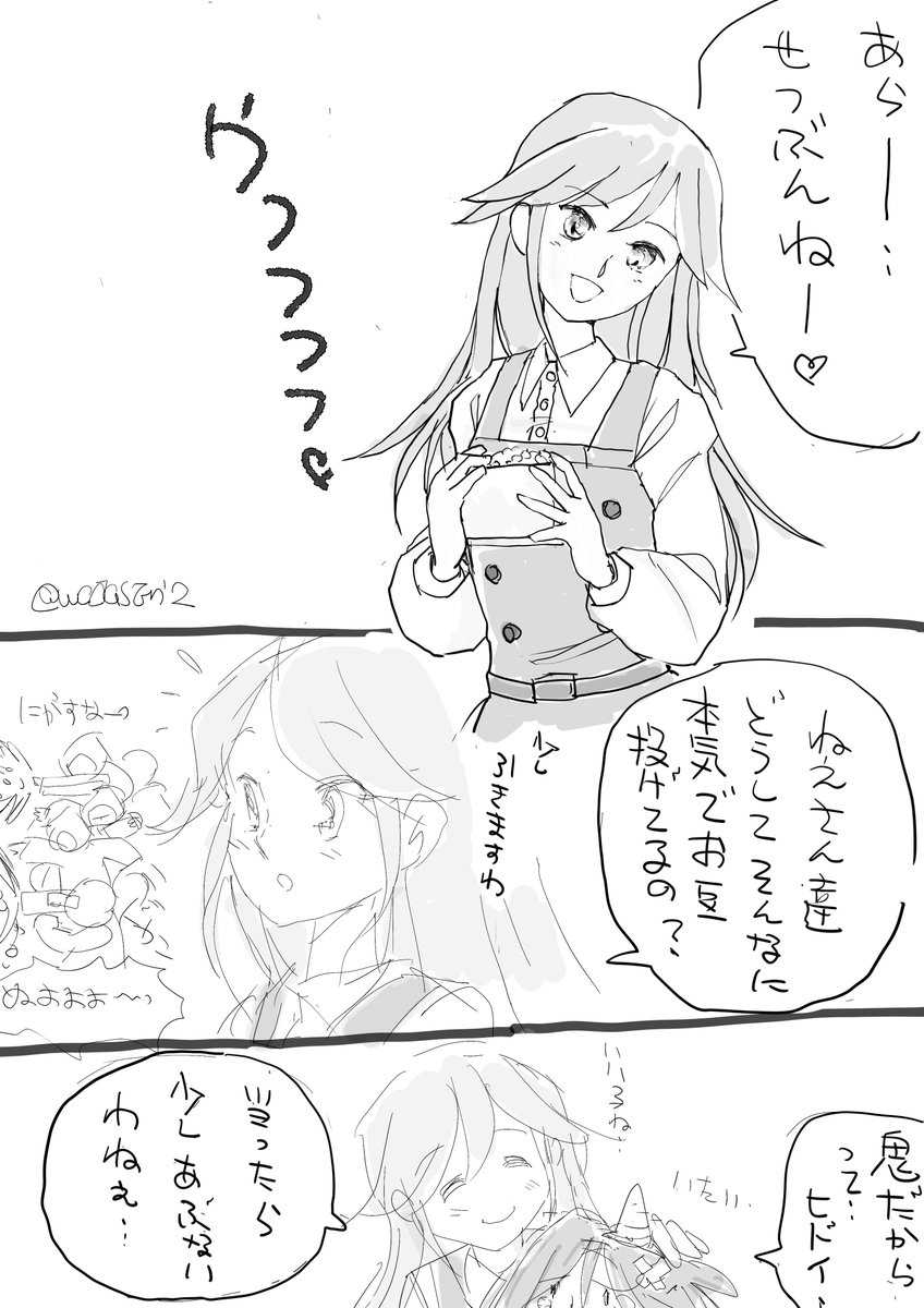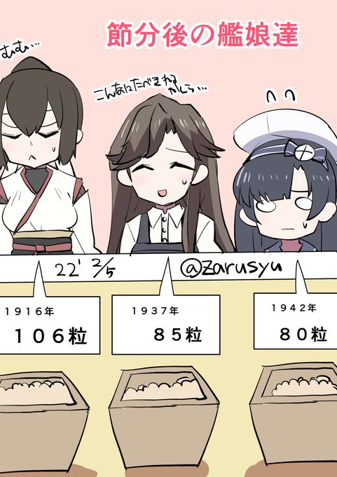 最初の何粒かは普段あまり好んでは食べないので珍しさもあって意外と美味しいですけど…… 荒潮、伊勢、松輪 #艦これ版深夜の真剣お絵描き60分一本勝負 #艦これ版真剣お絵描き60分一本勝負_20220205