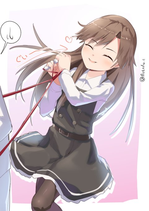 #艦これ版深夜の真剣お絵描き60分一本勝負 #艦これ版真剣お絵描き60分一本勝負_20220205 他の女子と仲良く話していると後ろから縄跳びの縄でつかまえてきて連れ去ろうとしてくるクラスメイトの荒潮ちゃんです