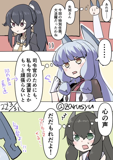 叢雲もイベ海域に出すのですが、万が一が怖くて増設に女神しか載せてないので全力が出せてないかも……。 でも旗艦でも叢雲の女神は怖くて外れないジレンマ。 矢矧、叢雲、伊47 #艦これ版深夜の真剣お絵描き60分一本勝負 #艦これ版真剣お絵描き60分一本勝負_20220331