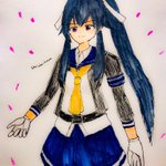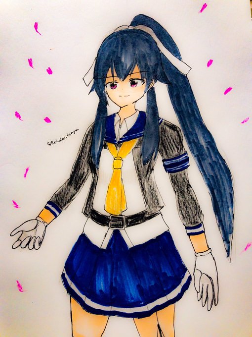 久々に絵をかけたのが嬉しかったので、記念にもう1枚書いてみた クーピーで書くの好きなんだけど、写真にすると色が薄いのか撮り方が下手なのか、いい感じにならない...... #艦これ版深夜の真剣お絵描き60分一本勝負 #艦これ版真剣お絵描き60分一本勝負_20220331 #艦これ #叢雲改ニ