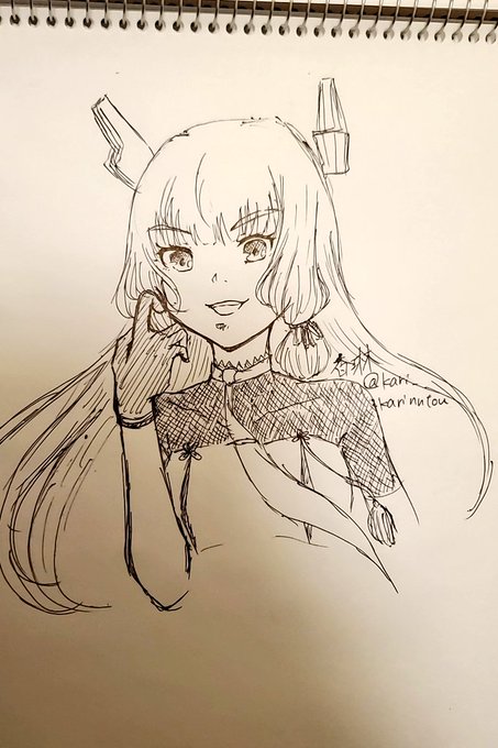 すっっっっっごい久しぶりにお絵描きしてみました! まさかの筆記用具が見つからなくて黒ペン1発書きしかできなかった....... なぜ叢雲を書くと毎回挑発的な顔になるのか....... #艦これ版深夜の真剣お絵描き60分一本勝負 #艦これ版真剣お絵描き60分一本勝負_20220331 #艦これ #叢雲改ニ