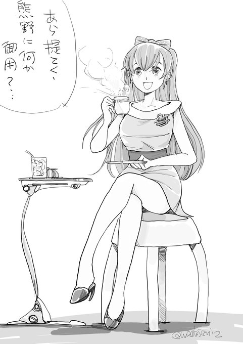 熊野はもし「一緒に居たら飽きそうにない艦娘」という提督アンケート取るとベスト3に入りそう(異論は認める) 熊野、伊400、山雲 #艦これ版深夜の真剣お絵描き60分一本勝負 #艦これ版真剣お絵描き60分一本勝負_20220414