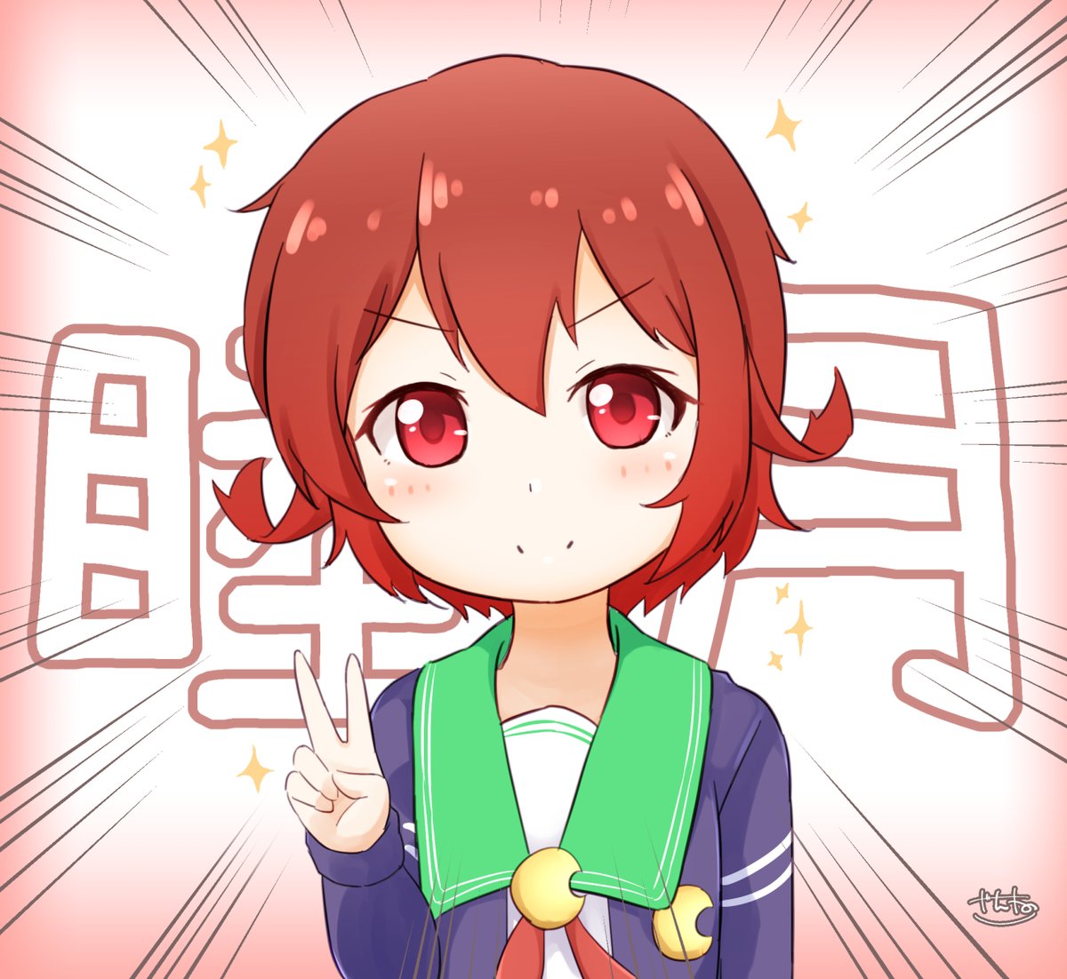 おぉー、このみなぎるパワー! 睦月、感激ぃ! もっと素敵な艦娘になあ~れ~♪( ˘ω˘ )/☆彡 #艦これ版深夜の真剣お絵描き60分一本勝負 #艦これ版真剣お絵描き60分一本勝負_20220419 #睦月 #艦隊これくしょん #艦これ