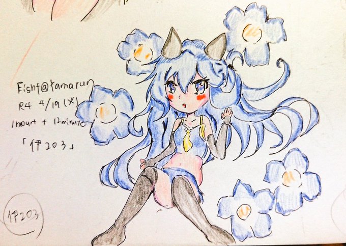 フーミィちゃん!(●´∀`●) そして、4月の花ネモフィラと一緒に描いてみました!! #艦これ版深夜の真剣お絵描き60分一本勝負 #艦これ版真剣お絵描き60分一本勝負_20220419 #伊203