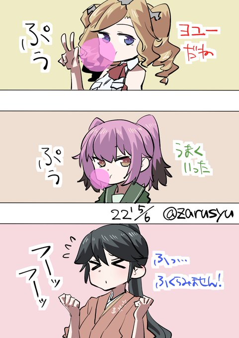 フーセンガム最後に噛んだのいつだろう……と、ふと思い返して思い出せない。 国後、鳳翔、ホノルル #艦これ版深夜の真剣お絵描き60分一本勝負 #艦これ版真剣お絵描き60分一本勝負_20220506