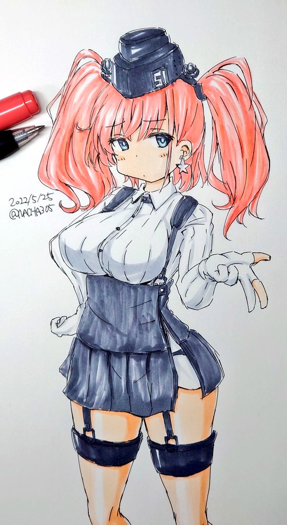 これは今私の着てるTシャツをアトランタに着てもらって、かつ手癖で描くとこういう角度&ポーズになるっていうヤツ #艦これ版深夜の真剣お絵描き60分一本勝負 #艦これ版真剣お絵描き60分一本勝負_20220525