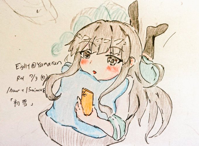 去年も同じような暑い時期に、夏バテ初雪を描いていたので、今回は開き直って、初雪っぽい寒い季節にしてみた。 ポーズ衣装は家にあったプライズのフィギュアを参考に。 #艦これ版深夜の真剣お絵描き60分一本勝負 #艦これ版真剣お絵描き60分一本勝負_20220703