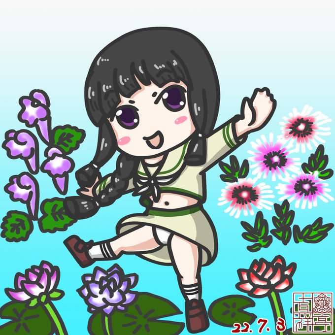 北上様進水日おめでとー ハス:誕生花 清らかな心、神聖、離れゆく愛 タツナミソウ:誕生花 私の命を捧げます マツバギク:誕生花 怠惰、勲功 #艦これ版深夜の真剣お絵描き60分一本勝負 #艦これ版真剣お絵描き60分一本勝負_20220703 #北上進水日